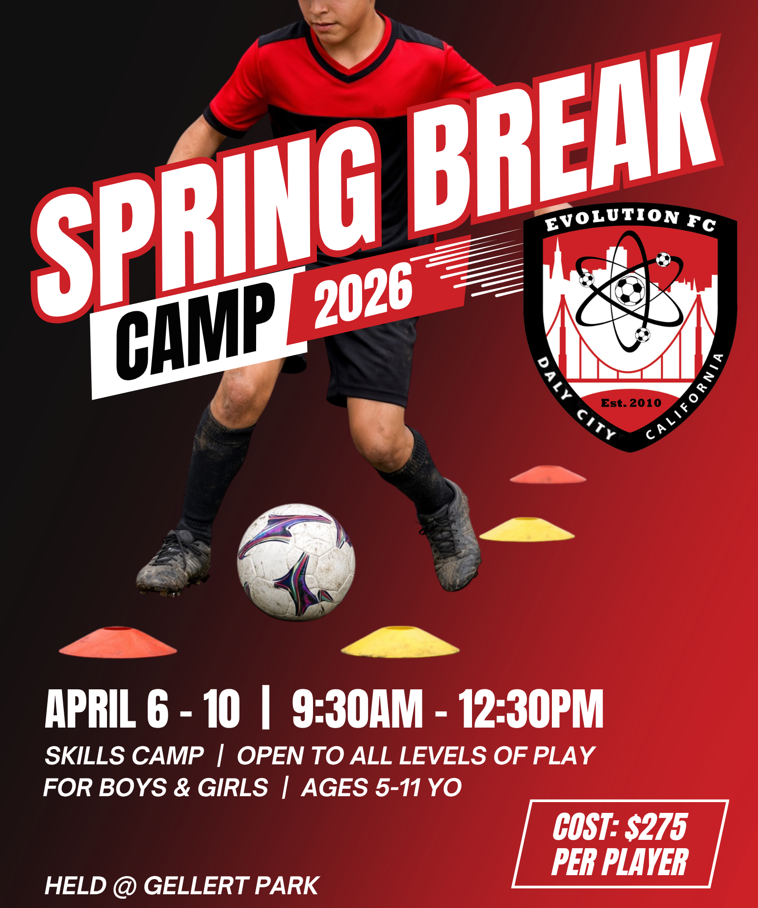Join Evolution FC for an exciting and fun-filled Spring Camp designed for boys and girls ages 5–11! Running April 6–10 from 9:30 AM to 12:30 PM, this camp focuses on developing fundamental soccer skills in a positive and engaging environment. Players will build confidence, improve technique, and enjoy games and activities led by experienced coaches.